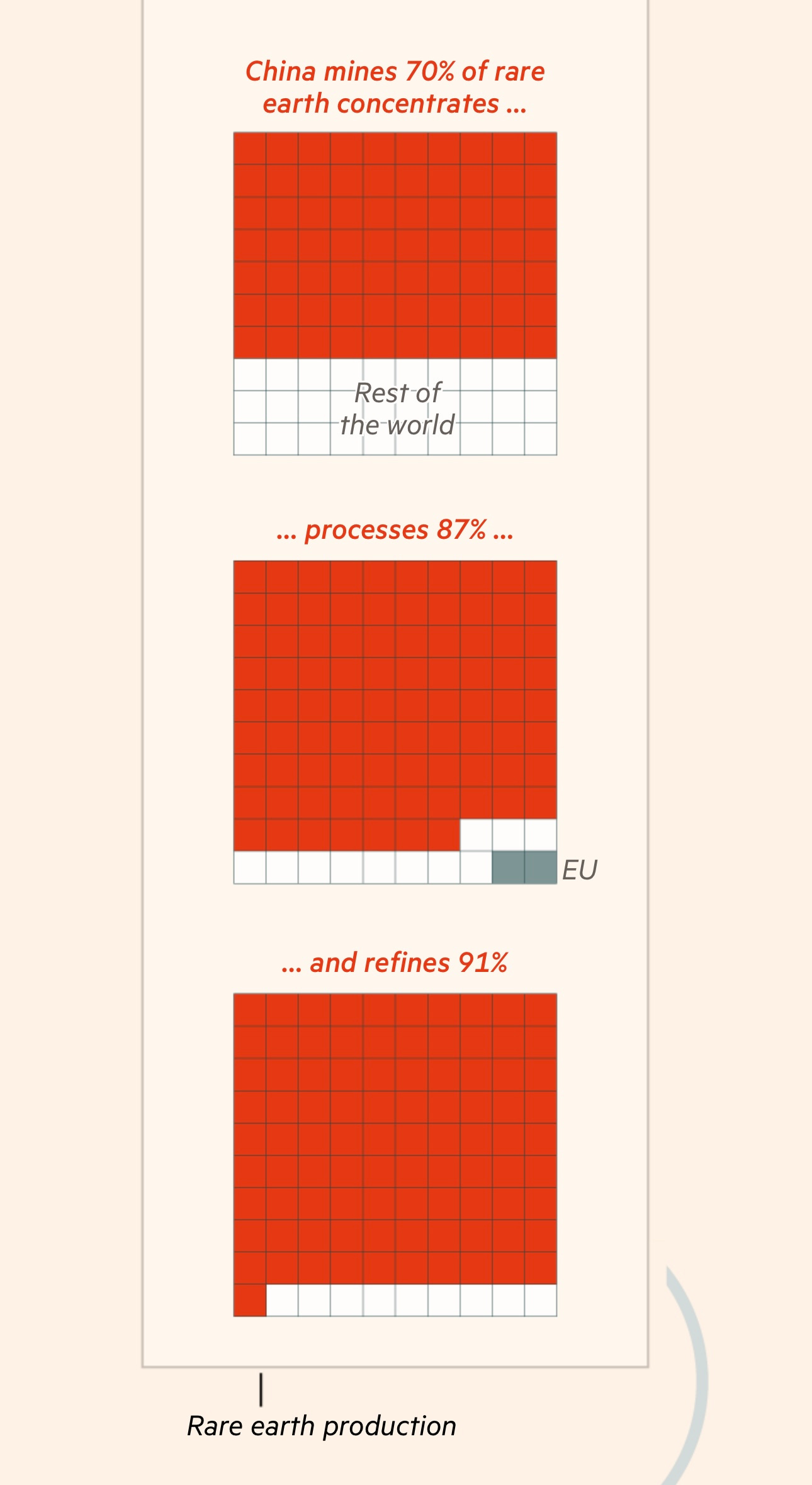 However, China controls most of the supply chain, capable of holding the rest of the world hostage. The following infographics from FT and Critical Metals Corp summarise this nicely.