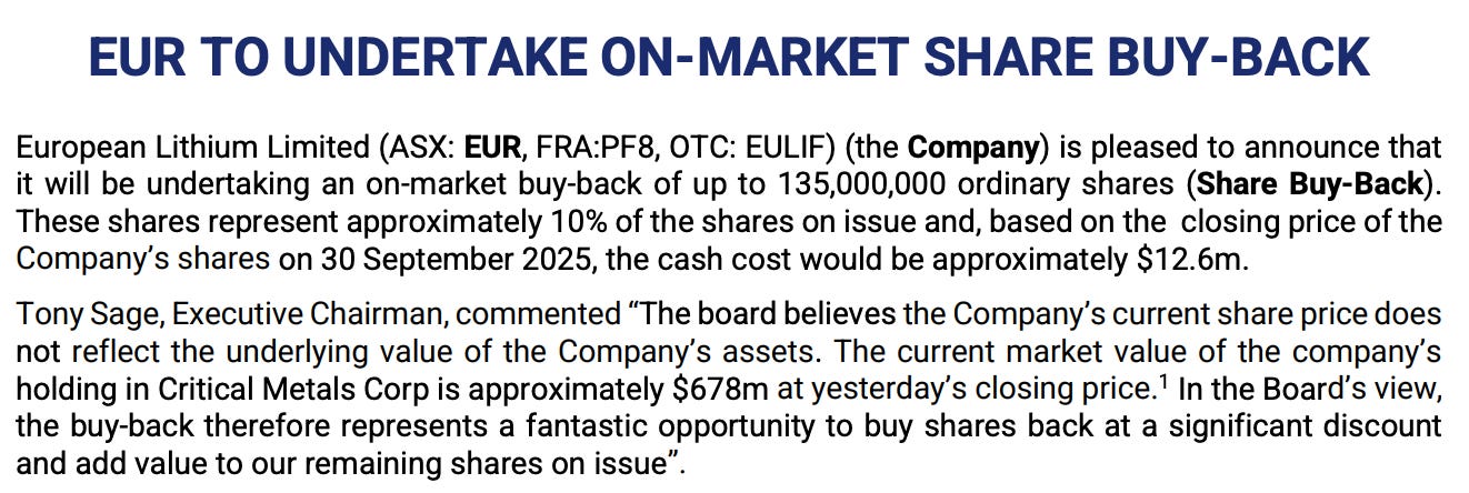 Until then, EUR continues to liquidate its CRML holdings, buy back its shares, and hold cash in its balance sheet.